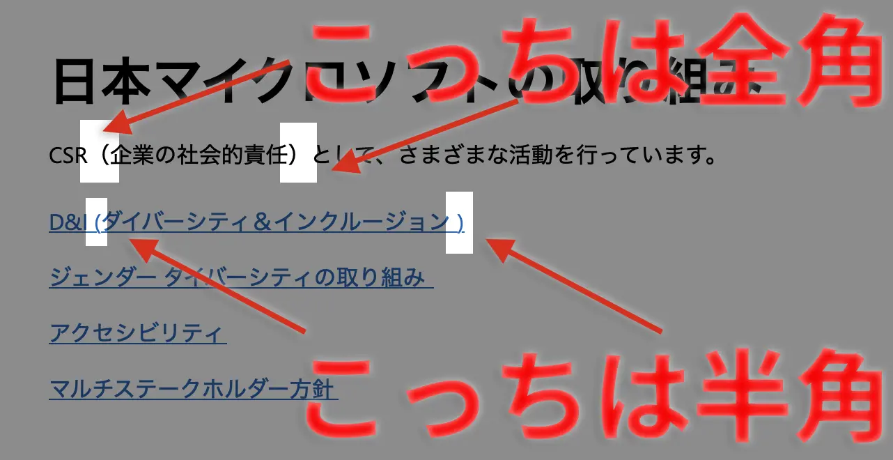 やや本題からずれますが、日本マイクロソフトは半角スペースだけでなく、「かっこ」の使い方すらバラバラだったりします。