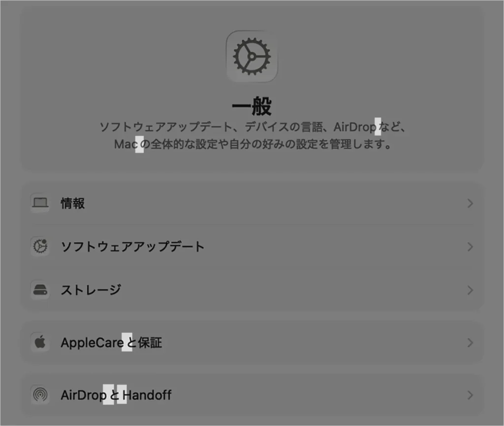macOS「システム設定」のスクリーンショット